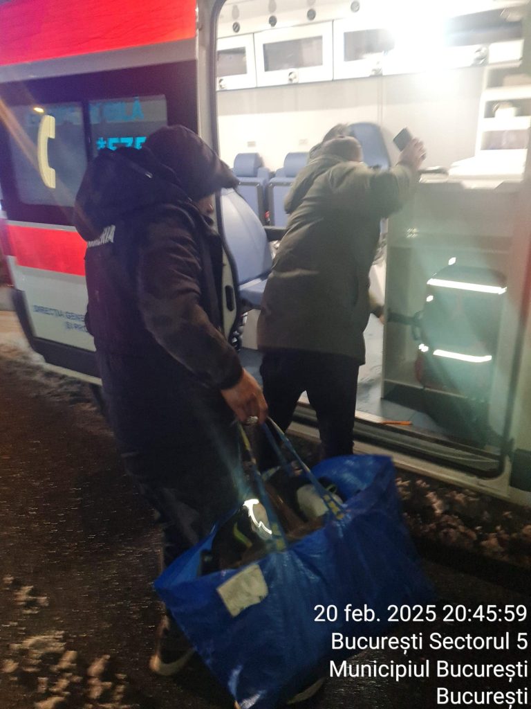 persoană fără adăpost, în Șos. Alexandriei, nr. 20, preluată de Ambulanță Mobilă DGASPC 5 și transportată la Spitalul Universitar de Urgență București