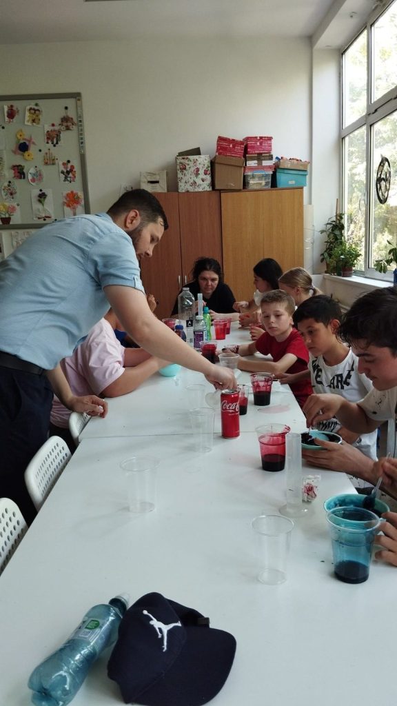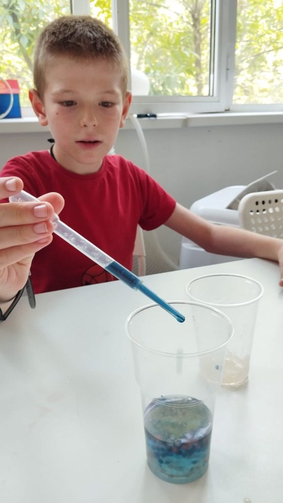 Săptămâna trecută, cei mici au pășit cu entuziasm în lumea științei, printr-un atelier de chimie distractivă. Au făcut experimente care le-au stârnit curiozitatea și imaginația – de la apa plimbătoare și mesajele secrete, până la paharul invizibil, bubble tea și slime. Pe lângă râsete și uimire, fiecare copil a primit la final o fișă de verificare, ca să își noteze ce a învățat și ce l-a impresionat cel mai mult.