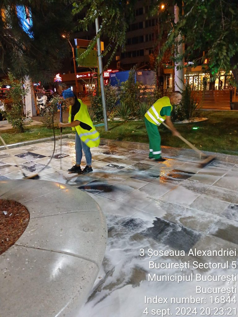 AMPLE LUCRĂRI DE IGIENIZARE ȘI SPĂLARE A TROTUARELOR ȘI STRĂZILOR, DESFĂȘURATE ÎN SECTORUL 5