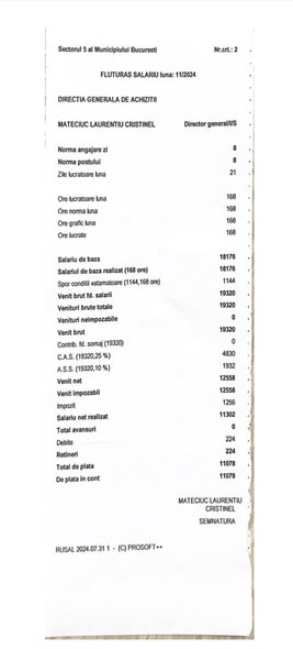 Totodată, pentru a asigura transparența şi pentru a oferi cetățenilor informații corecte şi complete, publicăm fluturaşii de salariu pentru funcțiile de administrator public, director general şi şef serviciu.