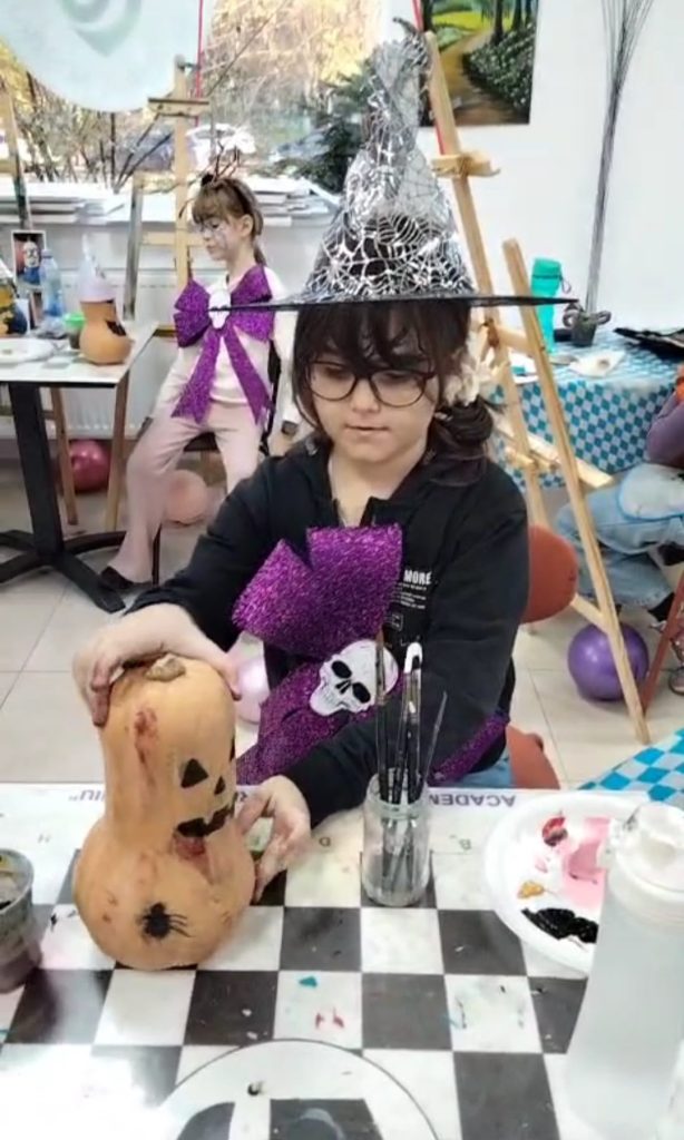 Astfel de activități vor continua în perioada următoare la Centrul de pictură, cu alte grupe de copii, gata să descopere și ei fascinanta lume a picturii, cu tematică de Halloween.