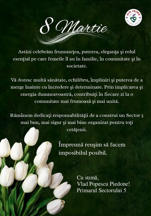 Astăzi celebrăm femeile, simbol al grijii, puterii și dedicării. Prin tot ceea ce faceți zi de zi, aduceți echilibru, inspirație și valoare comunității noastre.
