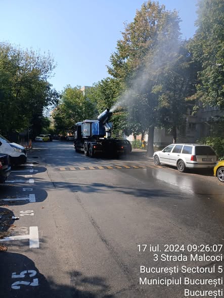 Mai exact, cisternele Salubrizare Sector 5 intervin pe străzile secundare, stropind cu apă pe carosabil, pentru a răcori atmosfera în perioada caniculară.