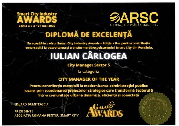 PRIMĂRIA SECTORULUI 5, PREMIATĂ LA GALA SMART CITY INDUSTRY AWARDS 2025